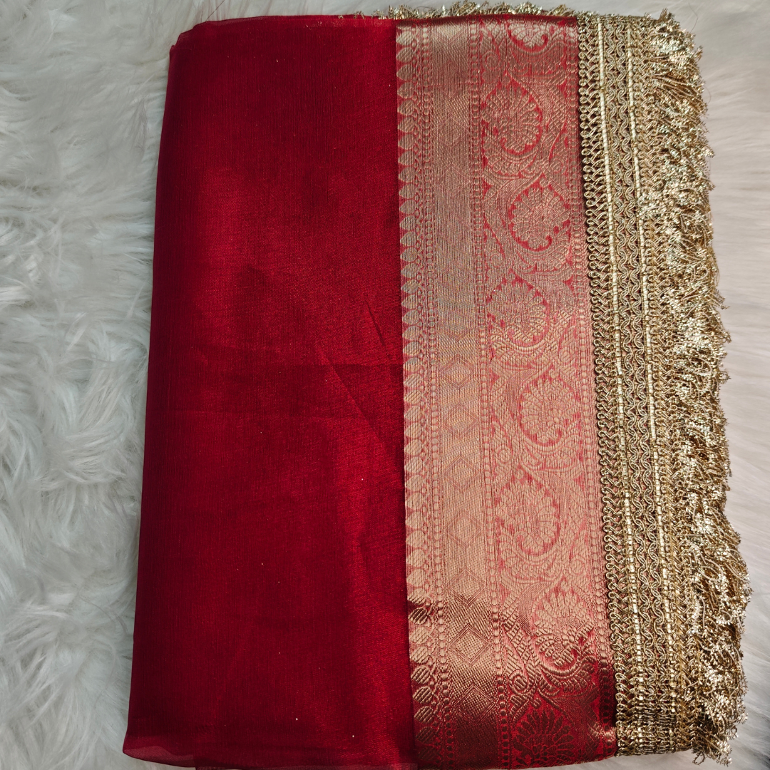 Add timeless elegance to your wardrobe with this stunning mehroon organza tissue saree, designed for modern women who love minimal yet classy styles. The lightweight and sheer texture offers a smooth drape, making it ideal for long events and effortless styling.